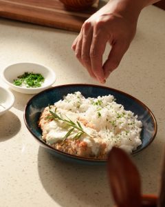 把鲜奶倒入另一个碗中并浸一浸茱蒂丝奶油苏打饼。