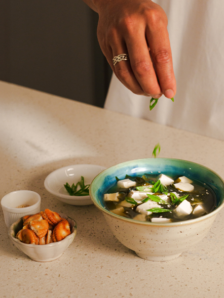 Peanut‑Butter Biscuit Crouton Miso Soup
